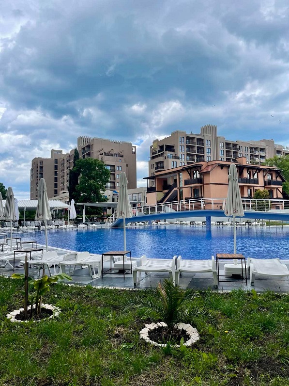 Hotelul Grand Nirvana 4* din Sunny Beach este format dintr-o cladire de 9 etaje cu 4 lifturi si ofera cazare in 86 camere duble, 59 apartamente cu 1 dormitor si 6 apartamente lux cu 1 dormitor.